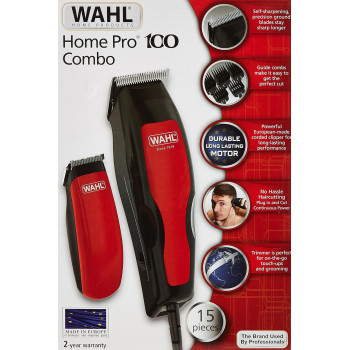 WAHL Home Pro 100 Combo Hair Clipper+Trimmer, Corded Electric, Men's Grooming Set with Precision Blades, Sleek Design, and Dry Operation, 1395.0417