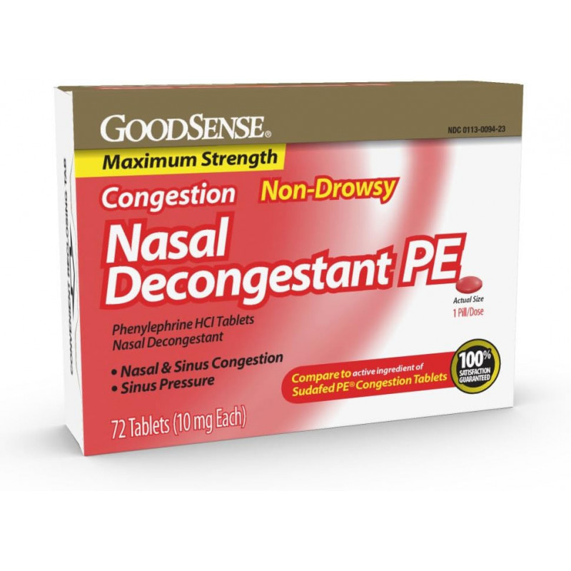 Current Price: AED 85.62 <br /> Item Price:GoodSense Maximum Strength Nasal Decongestant PE, Phenylephrine HCl 10 mg, Sinus Congestion Relief; Relieves Nasal Congestion Due to Hay Fever, Common Cold and Upper Respiratory Allergies, 72 Count<br /> Subscribe Now and get notifications for Price drops