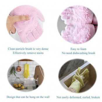 - Scrubbing surface: The gloves feature built-in scrubbing bristles or textures on the palm and fingers, allowing for effective scrubbing and cleaning of dishes, pots, pans, and other surfaces, eliminating the need for separate scrubbing tools.
