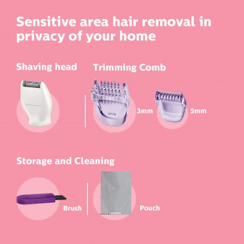 Current Price: AED 99.50 <br /> Item Price:PHILIPS Essential Bikini Trimmer. Trim. Shave & Style. Mini Shaving Head Included. Portable. Battery , Brt38315, Whitepurple<br /> Subscribe Now and get notifications for Price drops