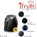 Current Price: AED 156.00 <br /> Item Price:Crownline Cl-113 Air Fyrer (Oil Free Fryer) 220-240V Ac; 50/60Hz,1500W; Class I, Black"Min 1 year manufacturer warranty"<br /> Subscribe Now and get notifications for Price drops