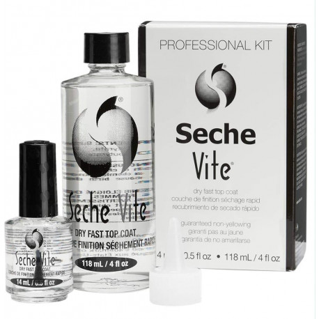 • Seche Vite Dry Fast Top Coat 118ml +14Ml Professional Refill Kit,1 x Seche Vite Dry Fast Top Coat 14ml1 x Seche Vite Dry fast Top Coat Refill 118ml1 x refill funnel