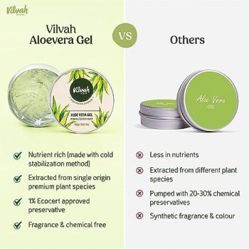 Current Price: AED 38.00 <br /> Item Price:Vilvah Aloe Vera Gel with 99% Pure Natural Aloe Vera for Face, Styling Gel for Hair, Skin Moisturizer, Hydrates and Soothes with Vitamin E and No Paraben, 100g (Pack of 1)<br /> Subscribe Now and get notifications for Price drops
