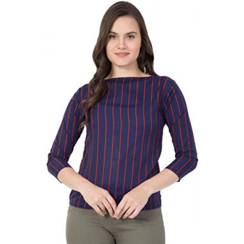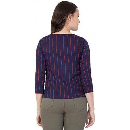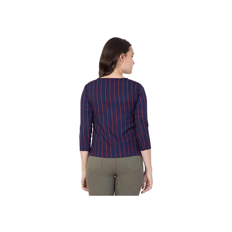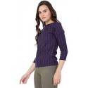 Vog Studio Women Casual Top, Royal Blue Stripe Top,3/4 Sleeves